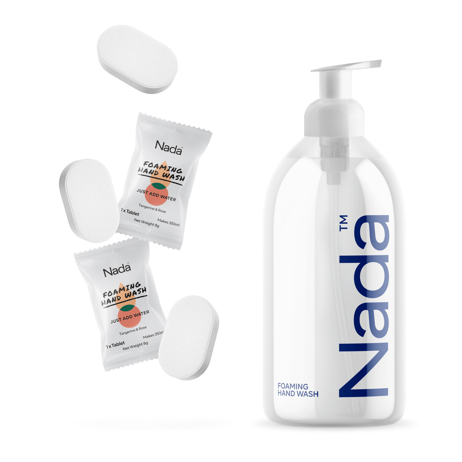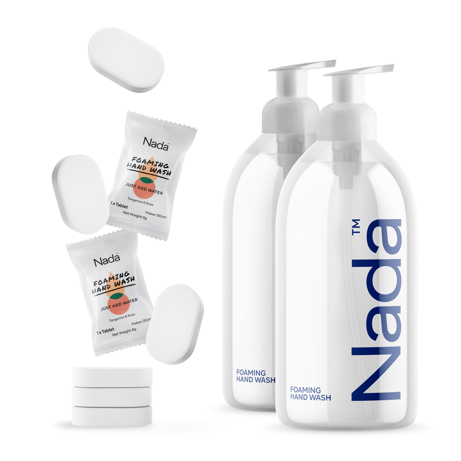 Our Foaming Hand Wash Starter Kit includes one foaming hand wash dispenser and two foaming hand wash refill tablets.